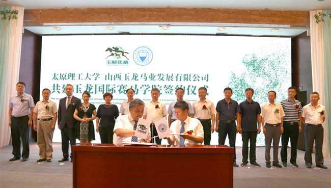 太原理工大學(xué)玉龍國(guó)際賽馬學(xué)院是太原理工大學(xué)與山西玉龍馬業(yè)發(fā)展有限公司,本著優(yōu)勢(shì)互補(bǔ)、強(qiáng)強(qiáng)聯(lián)合的原則共建的培養(yǎng)賽馬業(yè)和馬術(shù)界高端管理人才辦學(xué)機(jī)構(gòu)。2018年8月,雙方簽訂了共建“玉龍國(guó)際賽馬學(xué)院”合作協(xié)議,為中國(guó)馬業(yè)和教育領(lǐng)域,雙雙填補(bǔ)了國(guó)內(nèi)空白。2018年9月雙方在玉龍馬業(yè)舉辦了掛牌儀式。